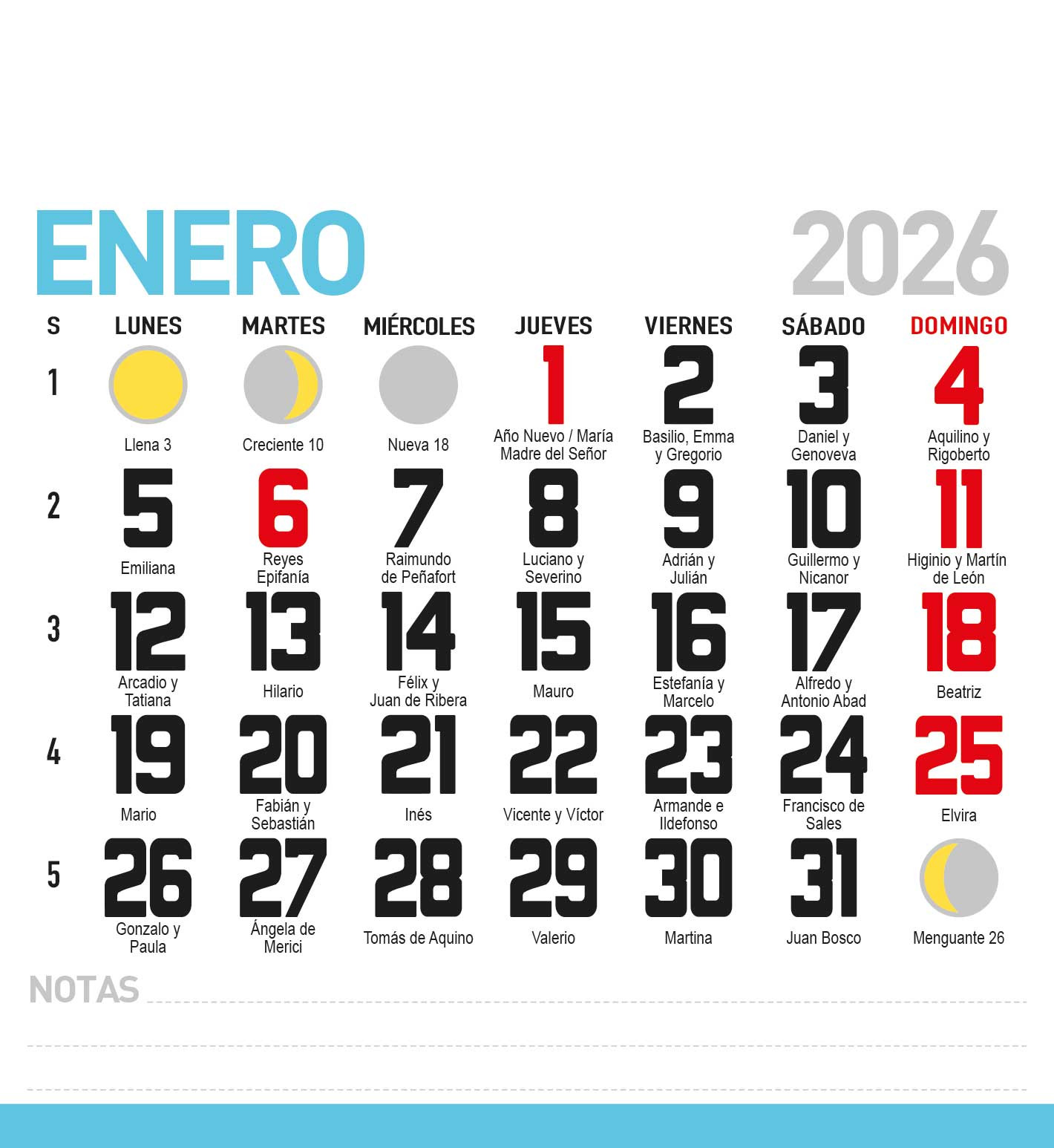 CALENDARIO DE PARED FALDILLA 48 MENSUAL-NOTAS...