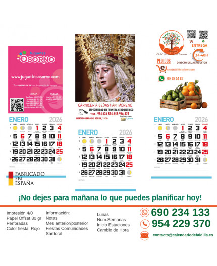 📌 Ficha Técnica – Calendario Faldilla Bimensual 23,5 x 31 cm 📐 Tamaño total: 23,5 cm (ancho) x 45 cm (alto) 🗂️ Composición: Cabecera personalizada (parte superior) Falda bimensual (parte inferior) 🖼️ Cabecera personalizada 📏 Tamaño: 23,5 cm...